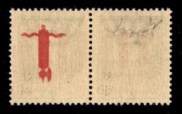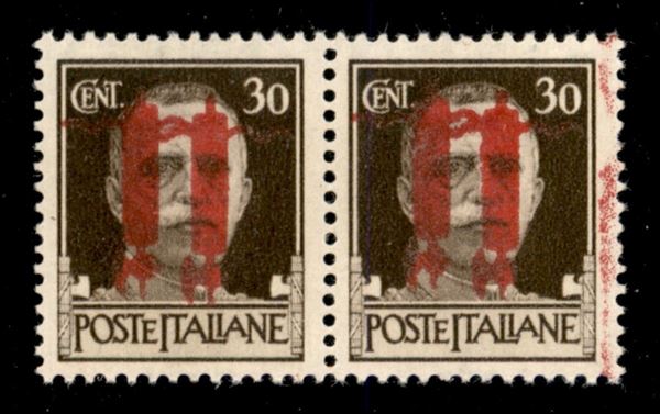 1944 - 30 cent (492d + 492d varietà) coppia con doppie soprastampe capovolte - singolo decalco a destra (+ riga di colore) - gomma integra - Chiavarello