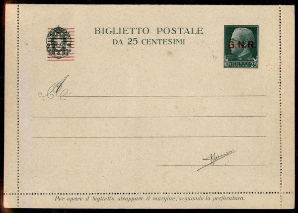 1944 - Biglietto Postale 25 cent (B33) - nuovo - Sorani