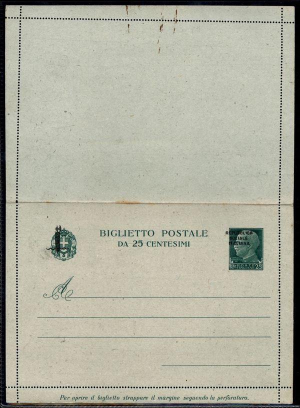 1944 - Biglietto postale da 25 cent (B35A) con soprastampa a mano - nuovo