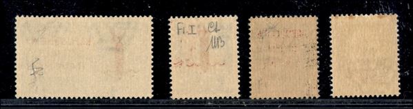 1944 - Carminio Lillaceo - 4 valori (492/I + 493/I + 495/I + Espressi 21/I) - gomma integra - 30 cent con lievi ingiallimenti in alto sulla dentellatura