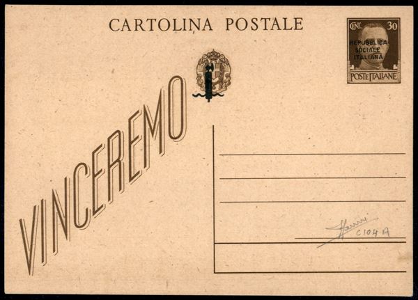 1944 - Intero postale da 30 cent (C104A) con soprastampa nera (Genova) - nuovo - Sorani