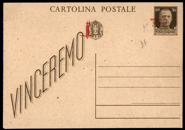 1944 - Intero postale da 30 cent (C104i) con soprastampa fortemente spostata a sinistra - nuovo - Biondi