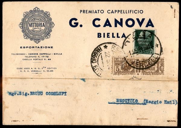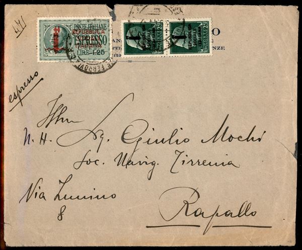 1944/1945 - Tre buste espresso di cui una raccomandata + una cartolina con affrancature del periodo - merita esame
