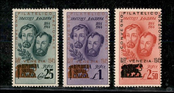 1945 - Fratelli Bandiera soprastampati Convegno Filatelico Venezia (512/514) - serie completa - gomma integra