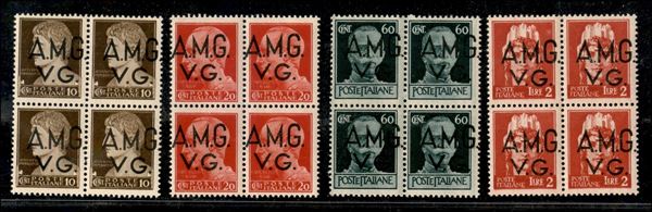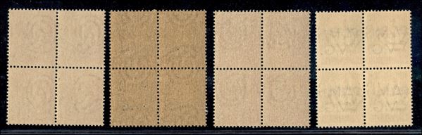 1945 - Soprastampe spostate - 4 valori (1hp + 4hk + 6hp + 9hp) in quartine - gomma integra