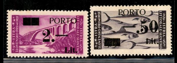 1946 - Segnatasse (6/II + 7/II) con tassello II e decalco di stampa su 2 lire su 30 - gomma integra