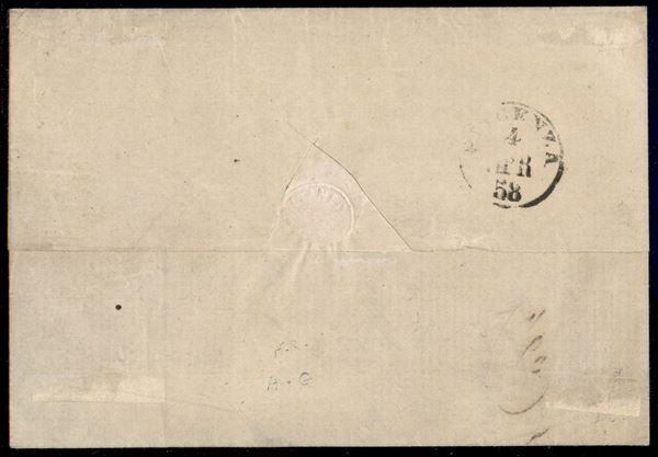 25 cent (4) isolato su lettera da Modena a Piacenza del 3.4.1858 - molto bella - G. Colla