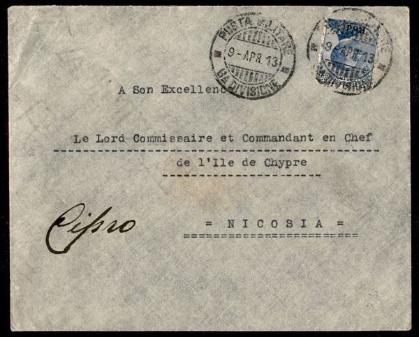 25 cent Michetti (5) isolato su busta per Cipro del 9.4.1913