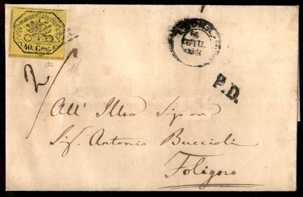 40 cent (19) isolato su lettera da Roma a Foligno del 6.6.1868 - A. Diena + L. Gazzi