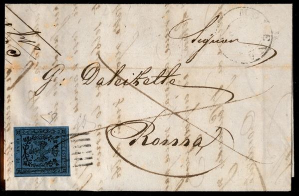 40 cent azzurro (6) isolato su lettera da Modena a Roma del 11.12.1852 - molto bella - Emilio Diena + Enzo Diena