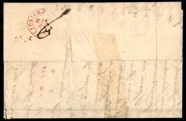 40 cent celeste (5) con grandi margini + 25 cent (4) piegato in verticale al centro - lettera da Reggio a Arau del 13.11.1852 - la pił rara tra le affrancature tricolori - cert. M. Raybaudi