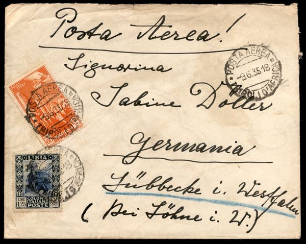 60 cent (10 - aerea) + 1,25 lire (105 - Libia) - aerogramma da Tripoli a Lubecca del 9.6.35 (288+)