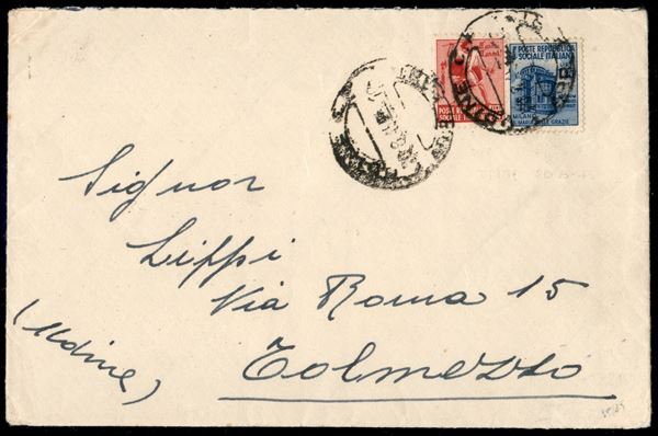 75 cent (409) + 1,25 lire (510) su busta da Udine a Tolmezzo del 20.8.45