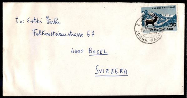 90 lire Cervo (1042a) con stampa del colore bruno spostata (tipo doppia stampa) su busta da Lucca a Basilea del 19.2.68