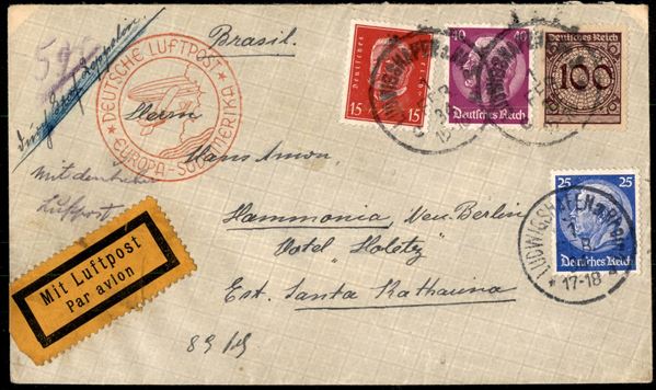 Aerogramma da Ludwigshafen per il Brasile del 1.2.34