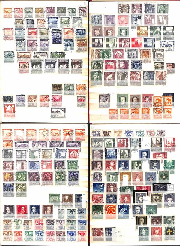 AUSTRIA - 1850/1994 - Collezione di valori e serie complete di posta ordinaria + servizi del periodo montati in grande album raccoglitore Clipper - principalmente usati con qualche presenza di nuovi - diverse buone presenze - merita esame