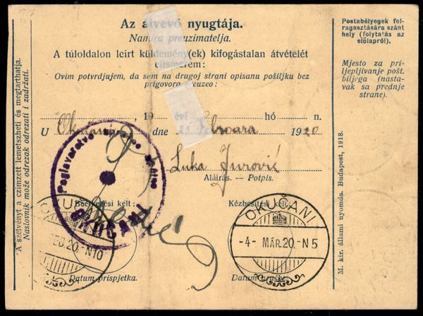 Bollettino Pacchi da Karlovac a Okucani del 21.2.20