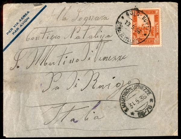 Bulo Burti/Somalia Italiana 19.5.36 - 1,75 lire Pittorica (224) isolato su aerogramma per Rovigo