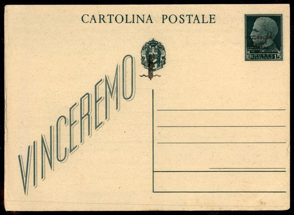 Cartolina postale da 15 cent (C103g) con soprastampa spostata in basso - nuova