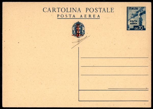 Cartolina postale da 70 cent (108A - soprastampa rossa) nuova - S. Sorani