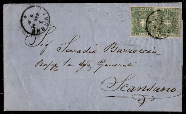 Coppia del 5 cent (18) con ottimi margini e parti del vicino a destra - lettera da Livorno a Scansano del 7.1.61 - L. Gazzi