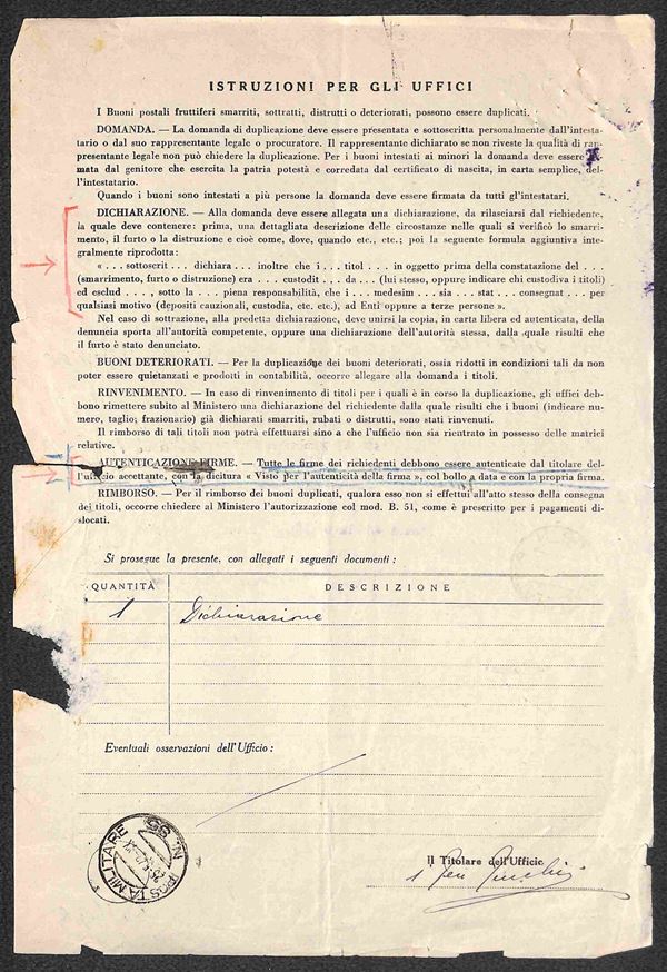 Coppia del 50 cent Imperiale (251) usato fiscalmente dalla P.M. 85 il 25.5.45 su Domanda di Duplicazione