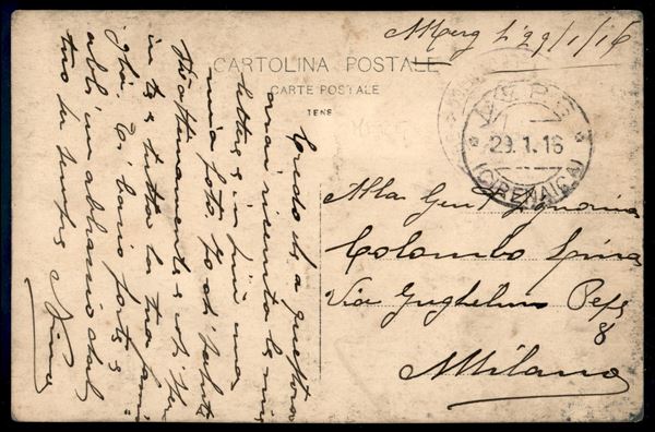 Derna - cartolina (fotografica) in franchigia da Merg a Milano del 29.1.16