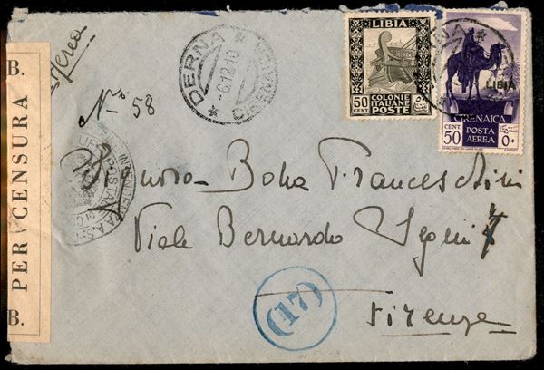 Derna 6.9.10 - aerogramma per Firenze - censure