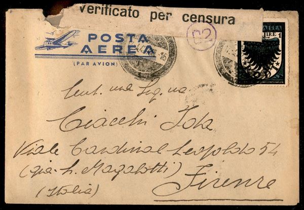 Divisione Regina - 1 lira (32 Aerea - Egeo) su aerogramma da Rodi a Firenze del 17.4.42