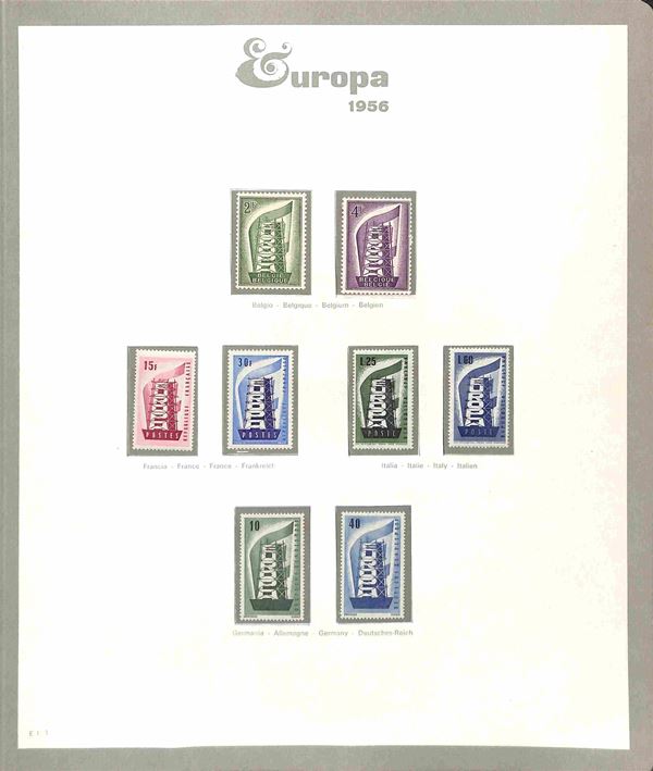 EUROPA CEPT - 1956/1999 - Collezione avanzata di valori nuovi in serie complete foglietti e minifogli del periodo - Completa fino al 1990 e pochissime mancanze fino al 1999 - montata in 16 album con fogli GBE + Marini in ottime condizioni - notato minifoglio Liechtenstein 1960 con Cert. 100% Bolaffi - gomma integra - condizioni perfette - merita attento esame