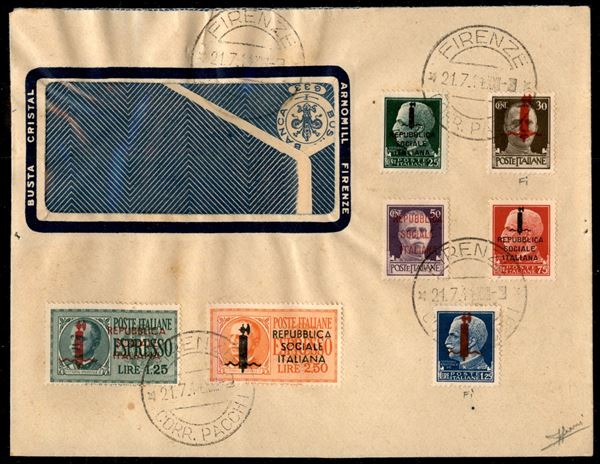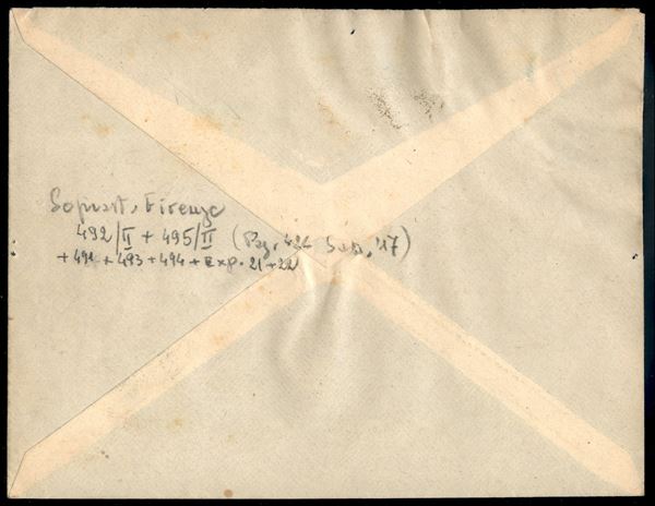 Fascetti (491/495 + Espressi 21/22) su busta - Firenze 21.7.44 - tinte delle soprastampe non comuni - merita esame - Sorani