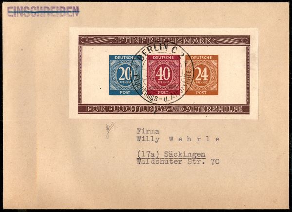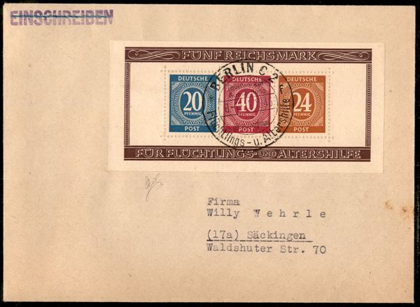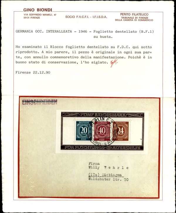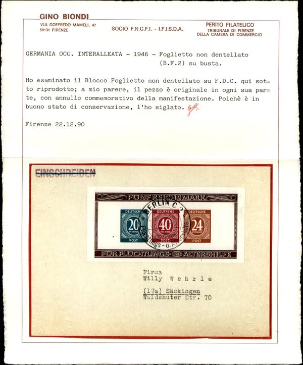 Foglietti Mostra Filatelica (Block 12A+12B) su due buste - Berlino 15.12.46 - cert Biondi (600)