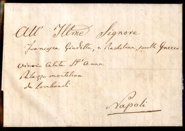 Forwarder - "Per favore del Sig. Mastro di casa del Mongibello" manoscritto al retro di lettera da Malta a Napoli (per casa Gnecco) del 3.8.1844 completa del testo