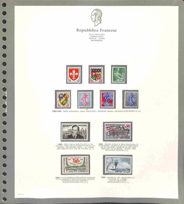 FRANCIA - 1960/1985 - Collezione completa di valori di posta ordinaria + aerea + servizi del periodo (unica mancanza la serie Segnatasse del 1960) montata in fogli e 3 album con custodia GBE - ottimo stato di conservazione - tutti gomma integra - valore di catalogo oltre 1.200 €