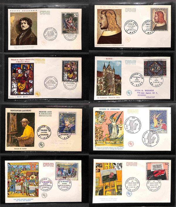 FRANCIA - 1963/1985 - Collezione di 102 FDC diversi tematica Arte emessi nel periodo montati in album raccoglitore a tasche - poche mancanze - ottimo stato di conservazione - valore di catalogo oltre 350 €