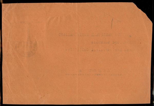 Frontespizio di raccomandata da Valdobbiadene a Venezia del 11.7.44 con affrancatura mista d'emergenza per 6.75 lire (255 + Aerea 12 + Pacchi Postali 33) - Savarese