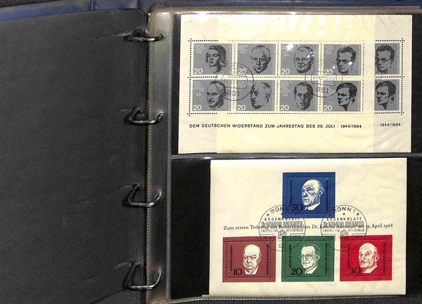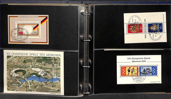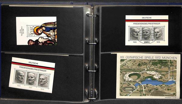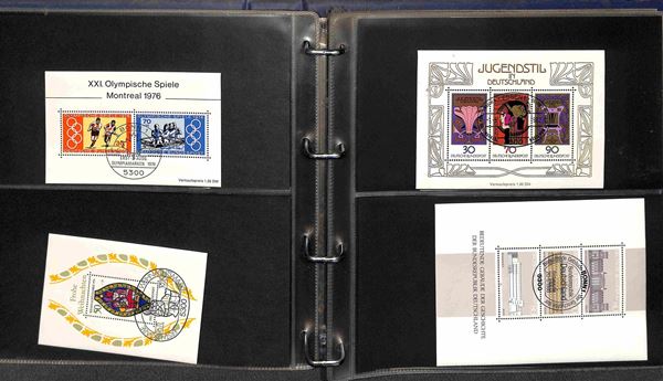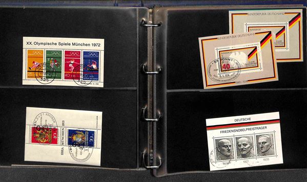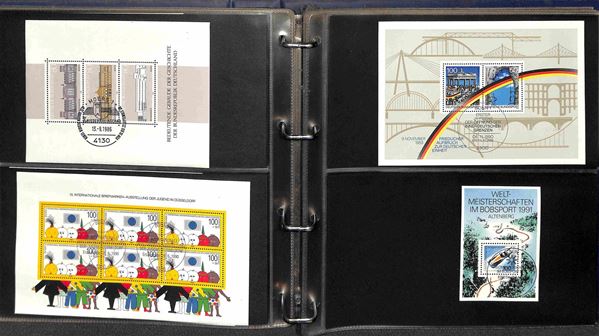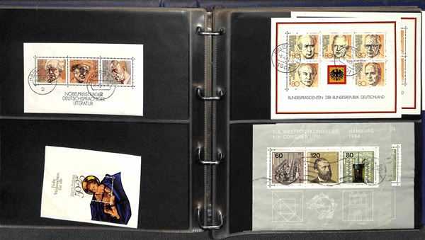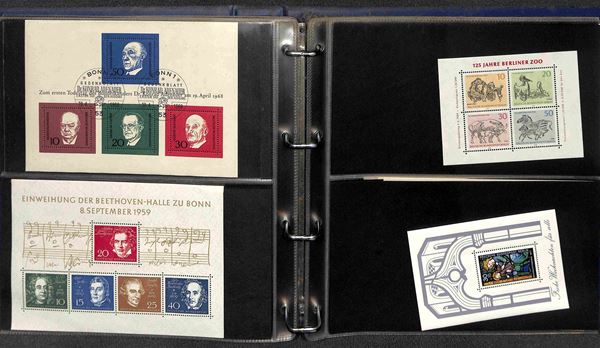 GERMANIA - 1959/1998 - BRD + BERLINO - Piccola collezione di oltre 50 foglietti principalmente usati con qualche gomma integra montati in album raccoglitore