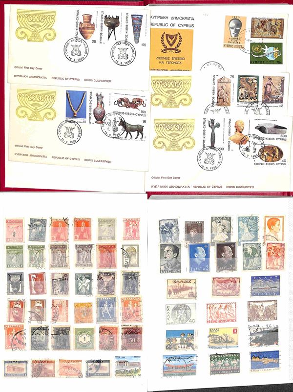GRECIA - 1910/1970 - Insieme del periodo di valori usati pił alcune buste in un piccolo classificatore - da esaminare