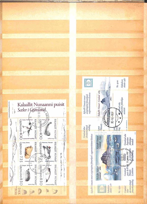 GROENLANDIA/FAROER - 1938/1991 - Buon inizio di collezione di valori e alcuni foglietti usati - montata in album raccoglitore - valore di catalogo oltre 200 €