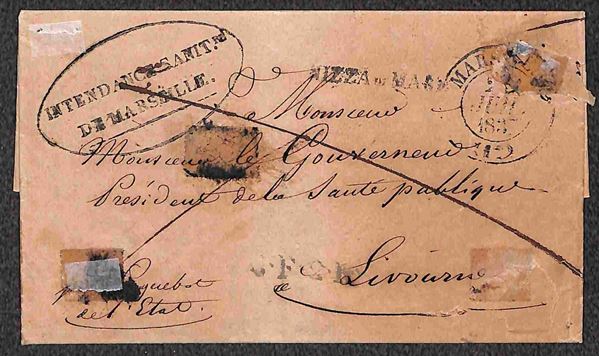 Lazzaretto San Rocco di Livorno - lettera da Marsiglia del 20.7.37 fumigata in arrivo - qualche strappo