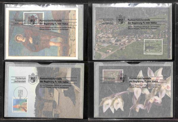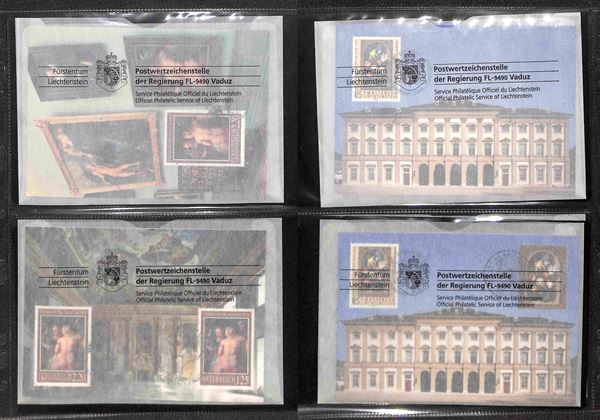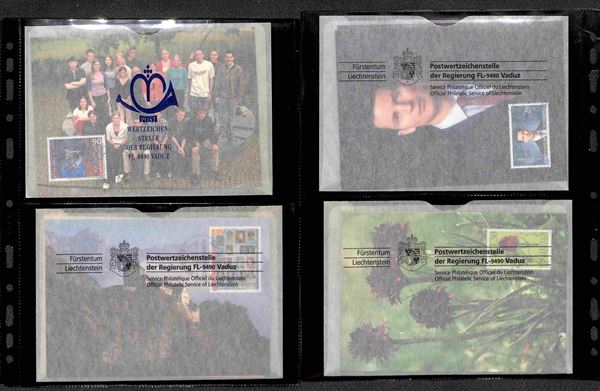 LIECHTENSTEIN - 2002/2007 - Collezione quasi completa di FDC su cartoline (MK 200/204 + 208/225 + 265/271) montate in album raccoglitore con tasche - ottimo insieme