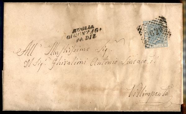 Moglia di Gonzaga (P.ti 10) + numerale a punti 2626 su lettera affrancata con 20 cent (T26) per Villimpenta 14.12.67
