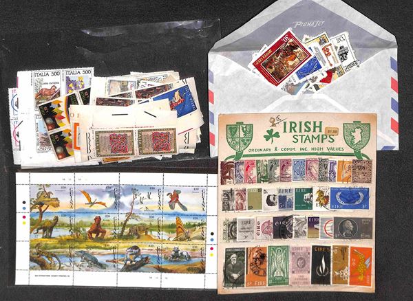 MONDIALE - Scatola contenente diverso materiale - valori nuovi e usati pił buste e cartoline per lo pił del periodo moderno pił alcuni blister con monete - da esaminare