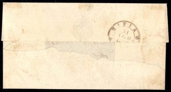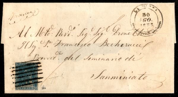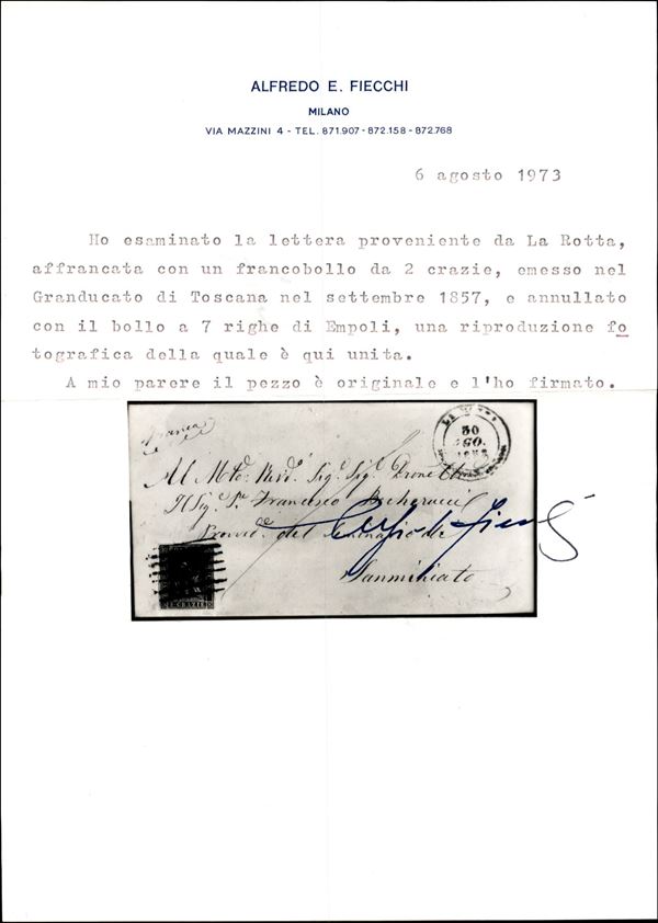 Muto a sbarre di Empoli su 2 crazie (13) - involucro di lettera da La Rotta a S. Miniato del 30.8.1858 - L. Gazzi + cert. A. Fiecchi