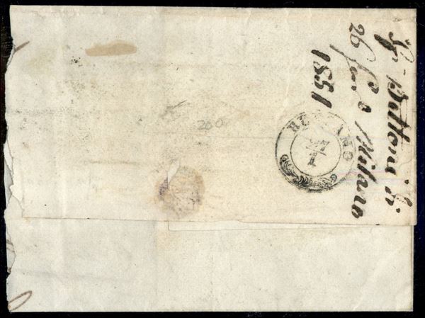 Muto di Milano (P.ti 11) - 15 cent (3e) su gran parte di lettera per Bergamo del 26.1.1851 - S. Sorani