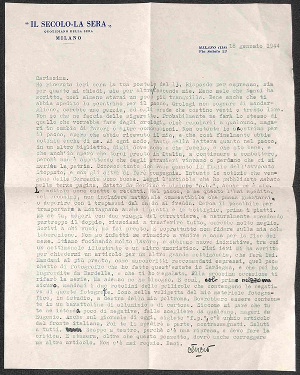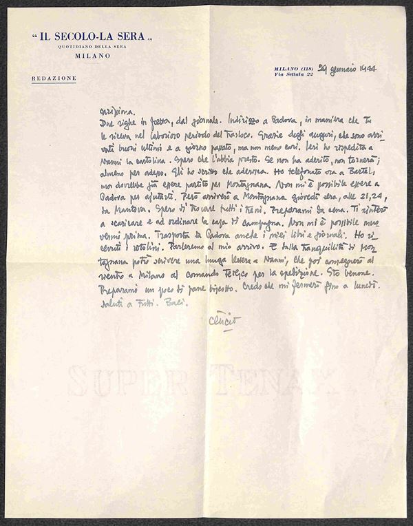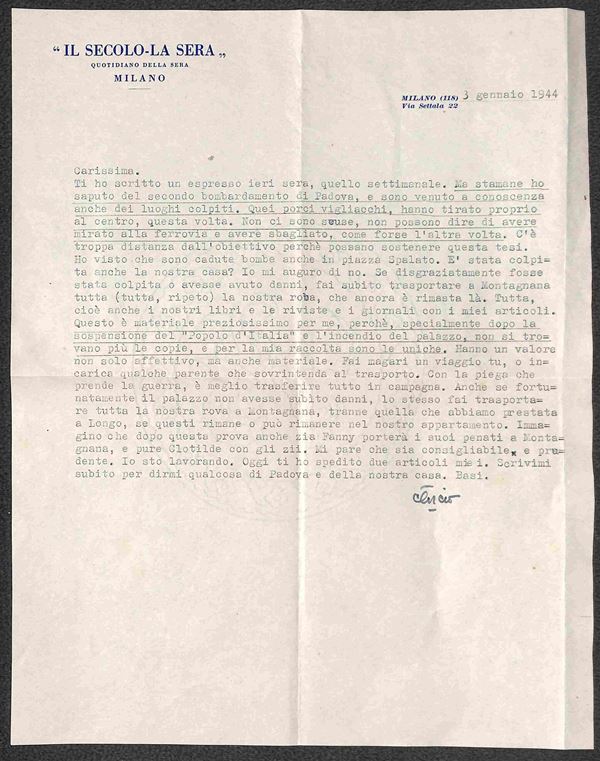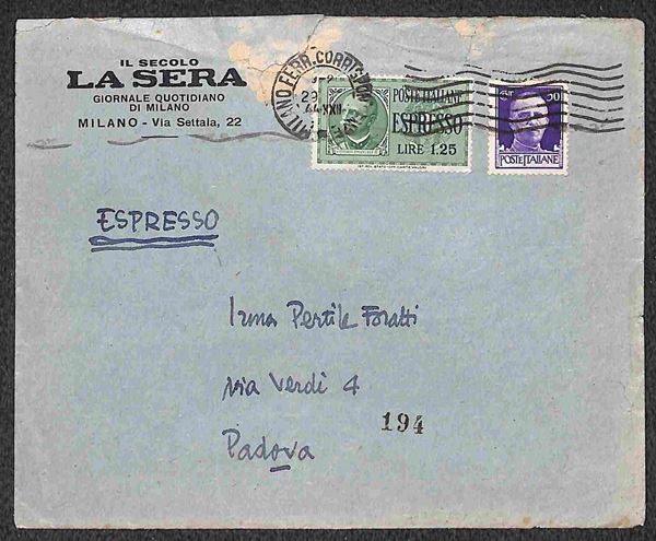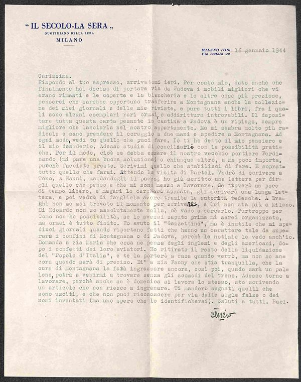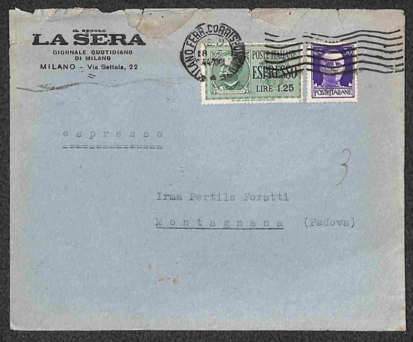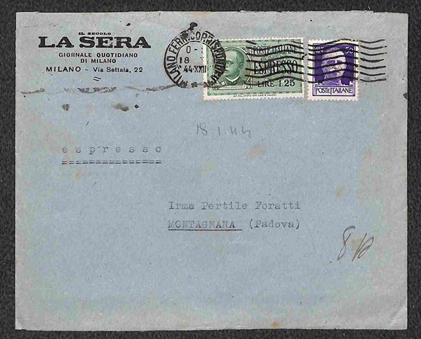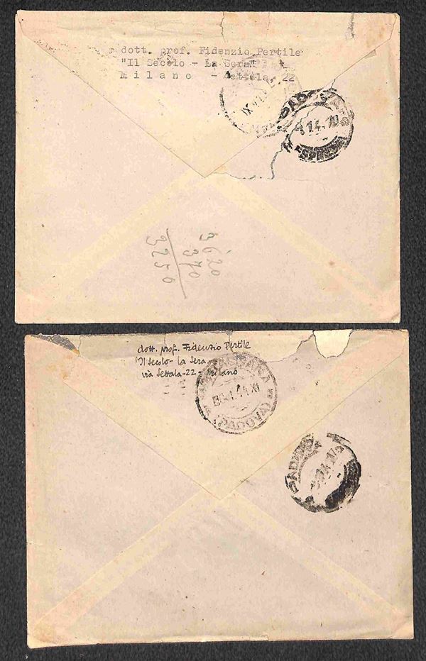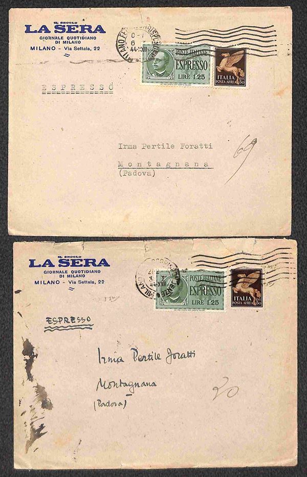 Pertile Fidenzio - Cencio - 1943/1944 - Sei corrispondenze espresso del periodo da Milano per Padova/Montagnana dirette alla moglie Irma - quattro complete del testo autografo (tre dattiloscritte) a firma Cencio Foratti