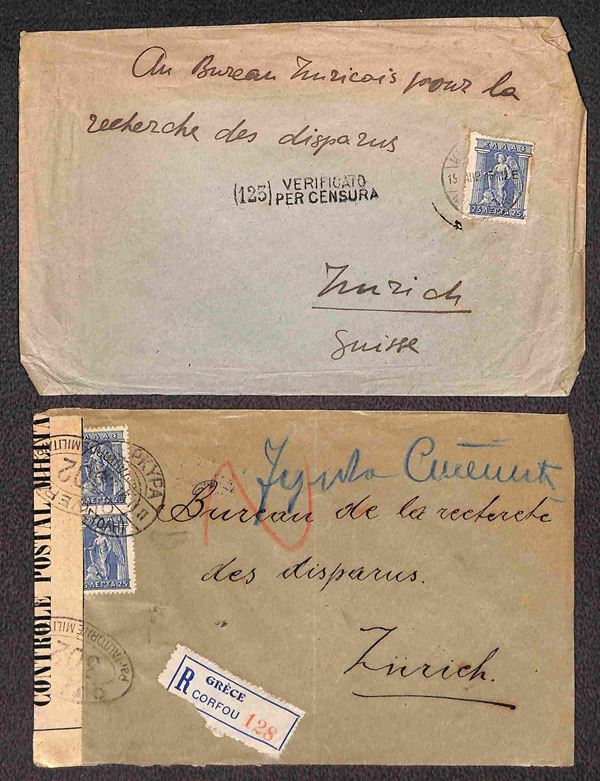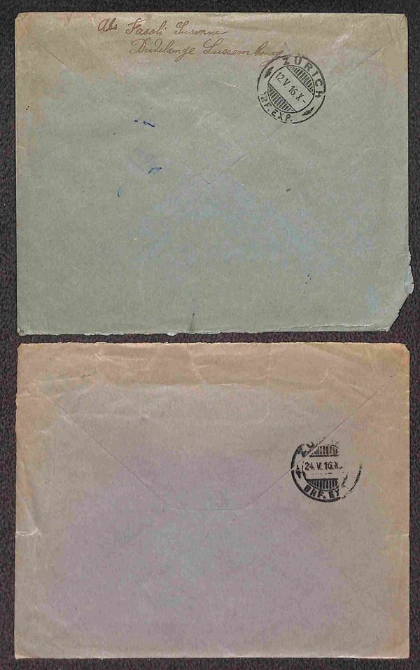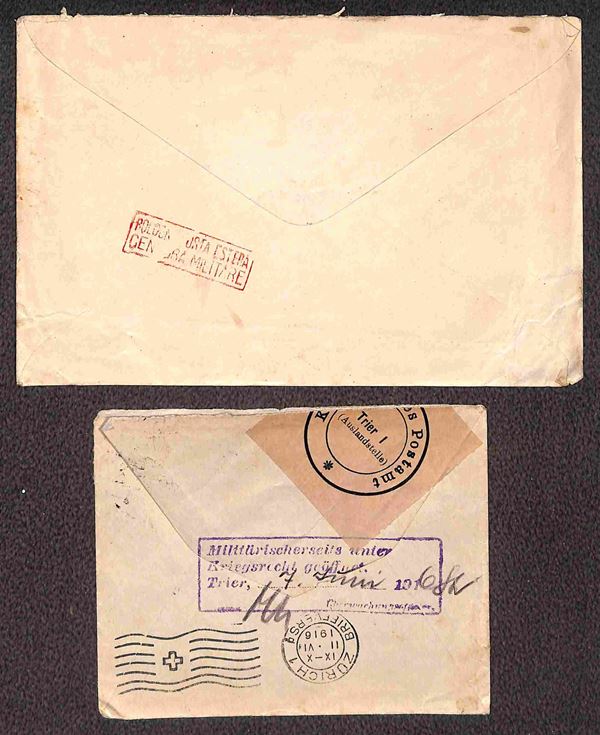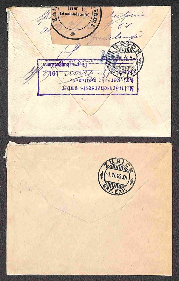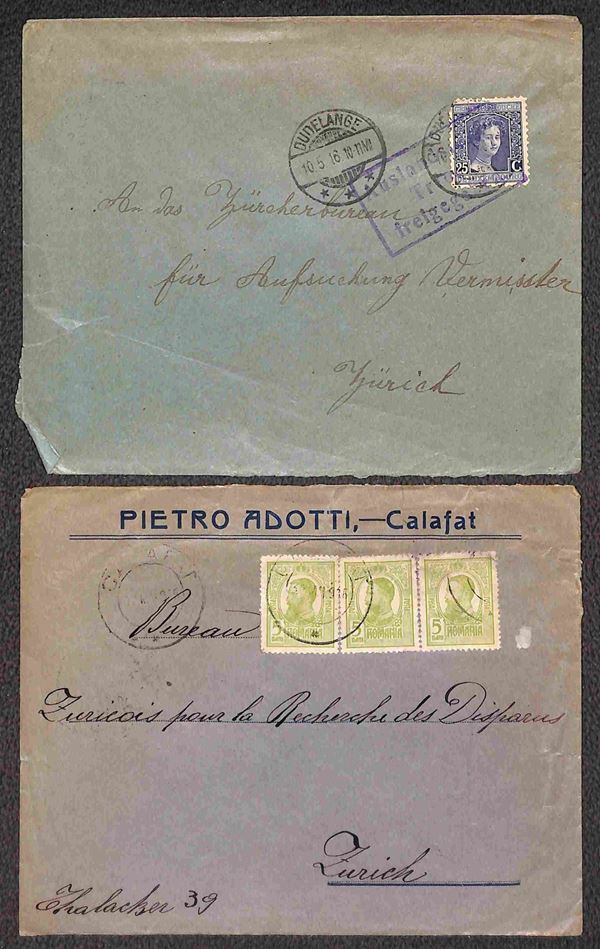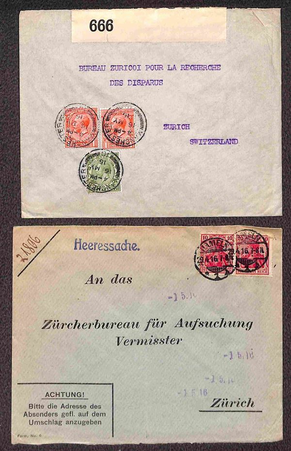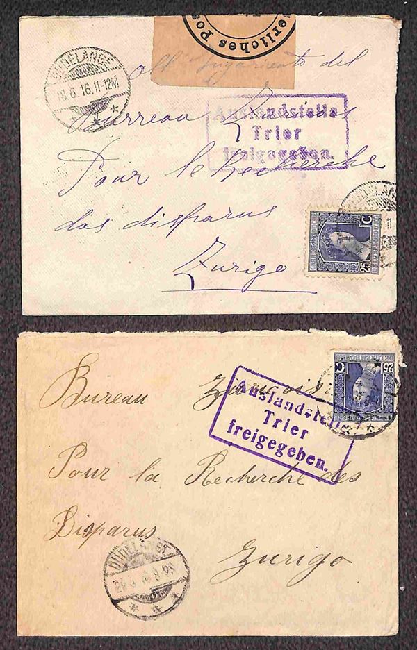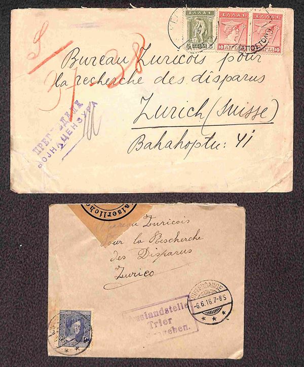 POSTA MILITARE - 1916 - Tredici buste per Zurigo (Ufficio ricerche dispersi) da Germania (1) Gran Bretagna (1) Grecia (3) Lussemburgo (4) Romania (3) e Ungheria (1)