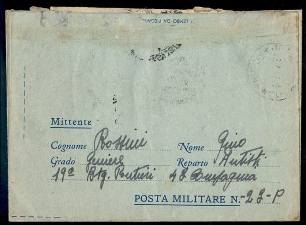Posta Militare 23 - busta postale in franchigia per Jesi del 8.1.42