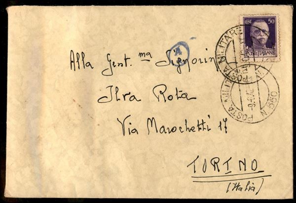 Posta Militare N. 550 - 50 cent (251 - Regno) su busta da Gadurrą (Aeroporto 806) a Torino del 9.6.42 (prima data nota)