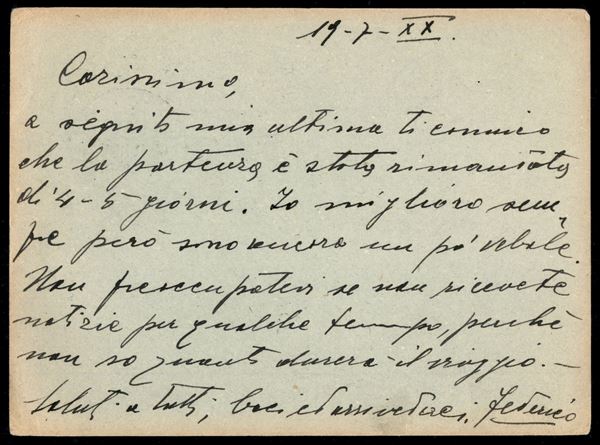 Posta Militare N. 550 (201 Legione CC.NN./Plotone Comando) - cartolina postale in franchigia da Rodi a Riva del 24.7.42 (prima data nota)